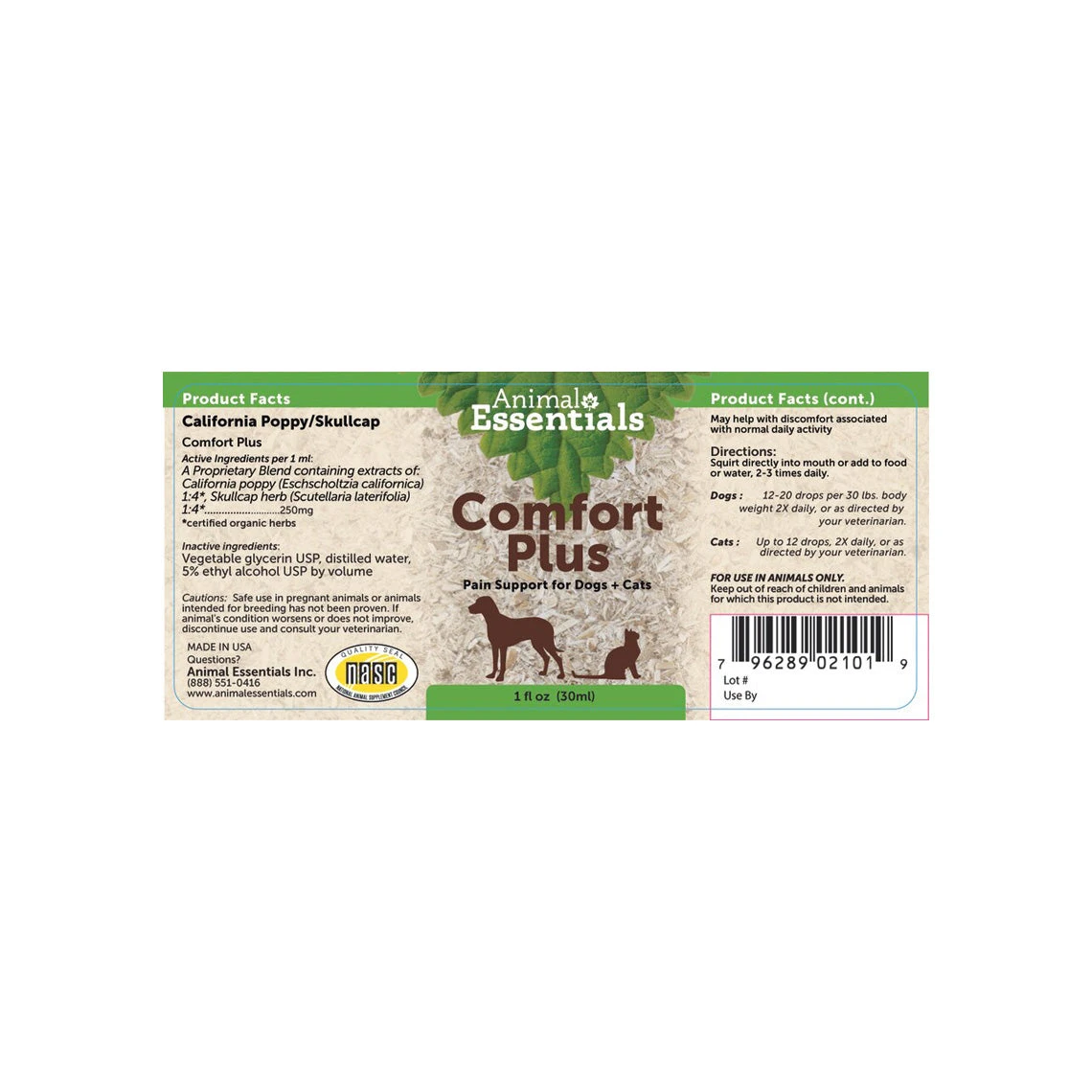 Animal Essentials Comfort Plus Liquid Herbal Formula For Dogs & Cats