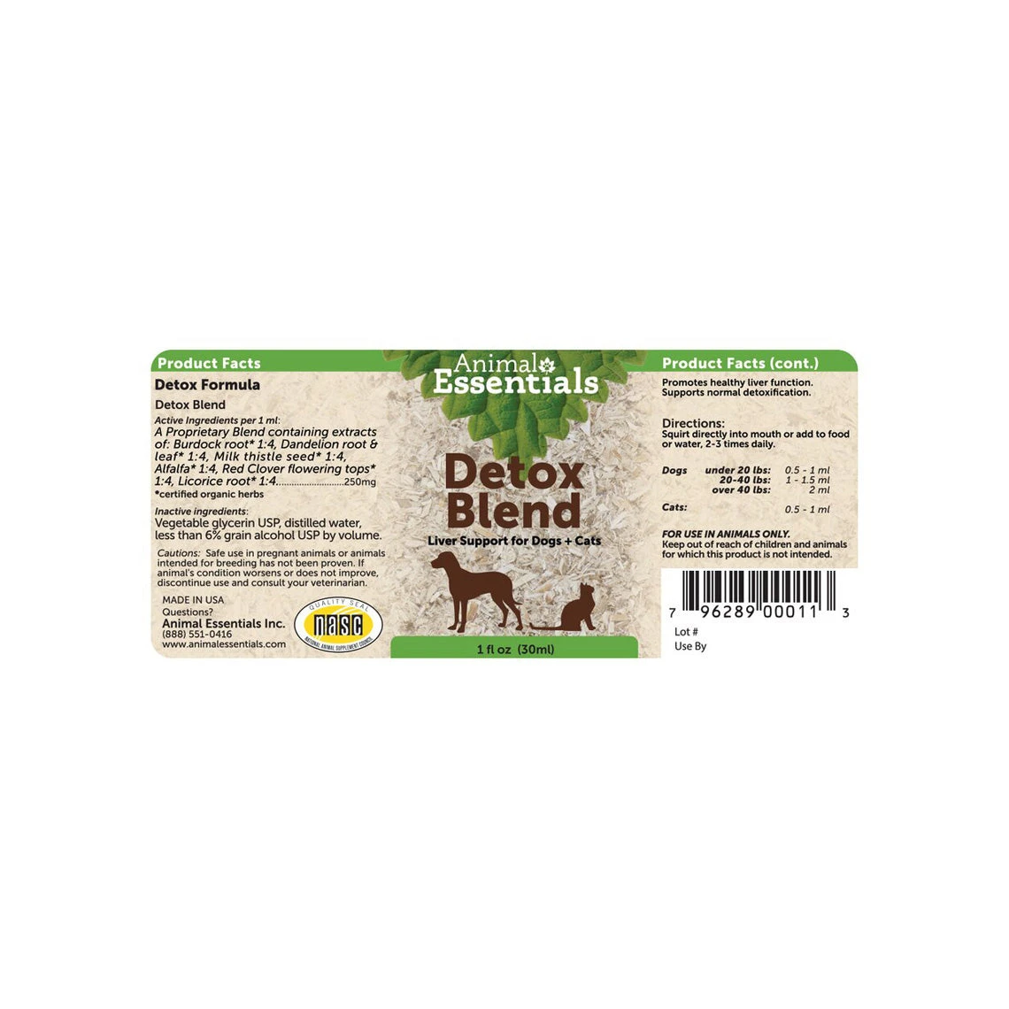 Animal Essentials Detox Blend is designed to support your pet dog or cat’s liver by eliminating the harmful toxins that damage it. This liquid formula is equipped with a graduated shatter-proof dropper pipette for ease of dosing and administration.