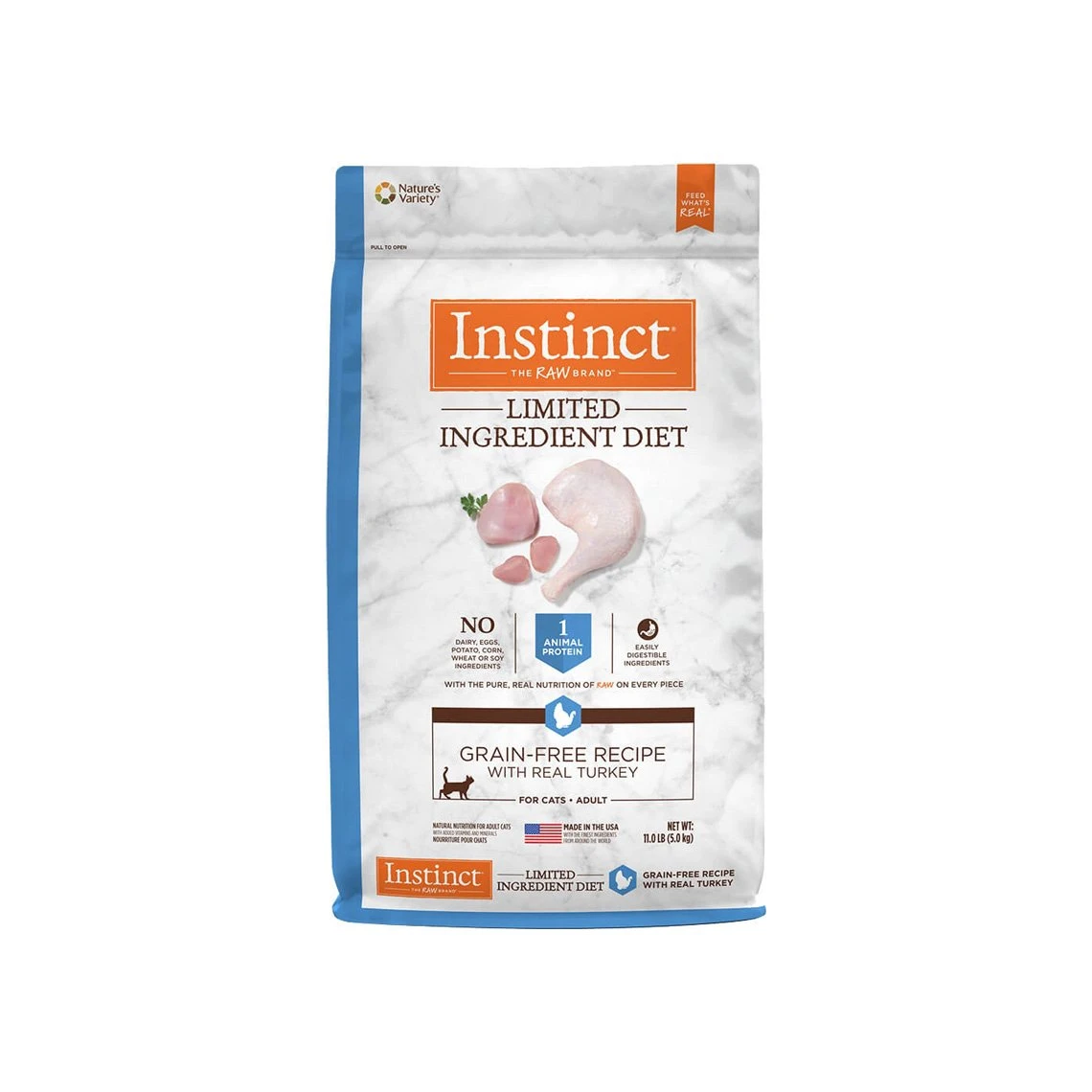 Using the fewest, most essential, highest quality ingredients available, Nature’s Variety Instinct Limited Ingredient Dry Cat Food does not contain any chicken, beef, fish, eggs, dairy, grain or gluten. Instead, it is a complete and balanced diet specially formulated with novel protein meal, gluten-free tapioca, low glycemic peas and healthy coconut oil.