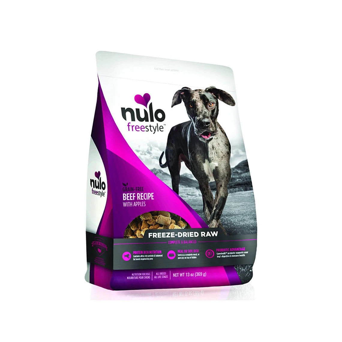 Nulo Freestyle Freeze Dried Dog Food is grain free and features a unique, patented probiotic strain that is able to keep it’s nutrients in tact even after being cooked! Introduce raw into your dog’s diet without all the hassle with Nulo FreeStyle Freeze Dried Dog Food.