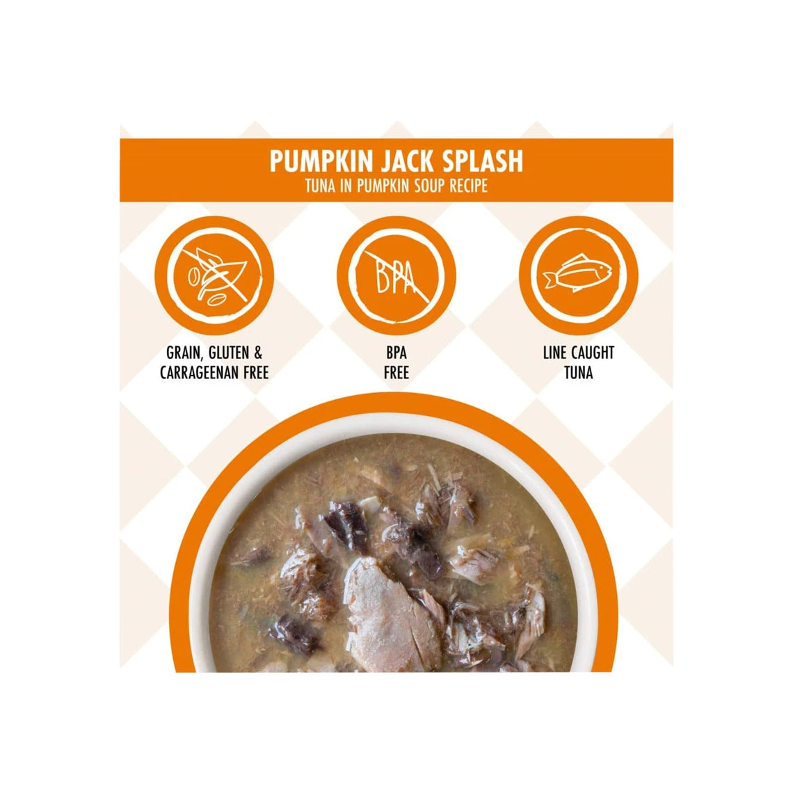 Weruva Pumpkin Jack Splash Pouches feature wild caught, dolphin safe Tuna in a Pumpkin soup recipe. Completely grain and gluten free, this highly palatable formula features Vitamins B and K and is perfect for your obligate carnivore. These easy-to-open pouches seal in the food’s moisture, which is your cat’s primary source of hydration; they’re also BPA free. Open a pouch and let your cat enjoy Pumpkin Jack Splash.